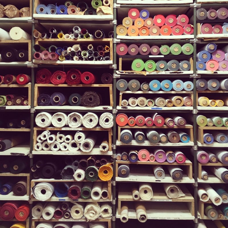 November – A rainbow selection of book cloth rolls, seen on a Paris Love Letters jaunt, at one of the many specialist paper and book emporium that we visit.