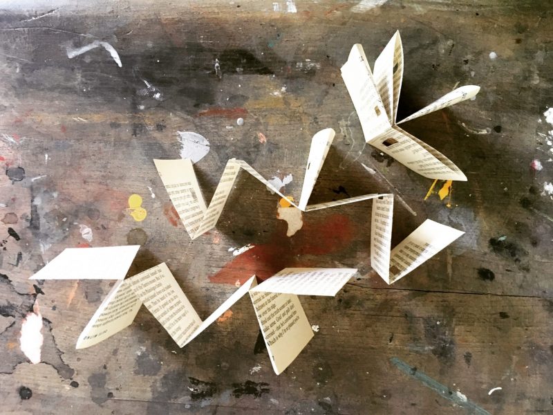 February – Creating paper hearts for a Valentine’s garland, using repurposed book pages. A special workshop at Golden Hare bookshop.