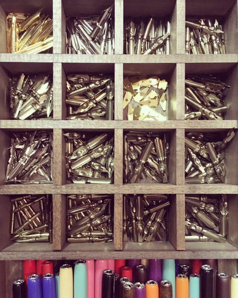 Henderson’s Art Shop 28A Raeburn Place. Art supplies and framing service. Established for over forty-five years, Stockbridge’s go-to place for paints, paper, brushes…. and calligraphy nibs on the counter.