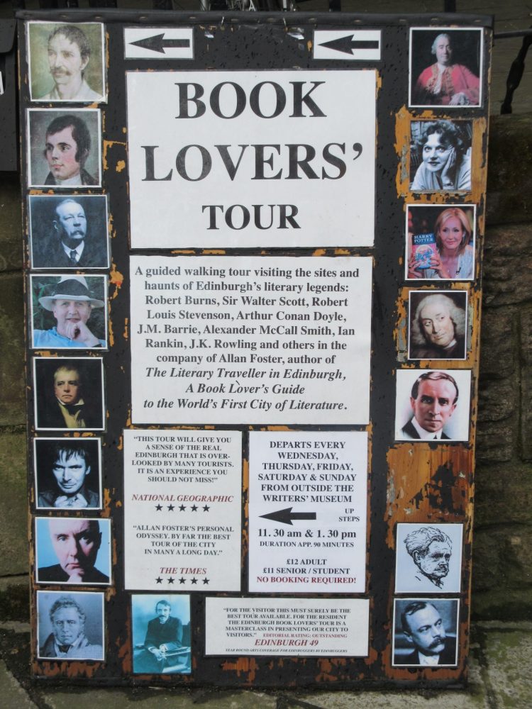 The Edinburgh Book Lovers Tour a walking tour visiting the sites and haunts of Edinburgh’s literary legends.
