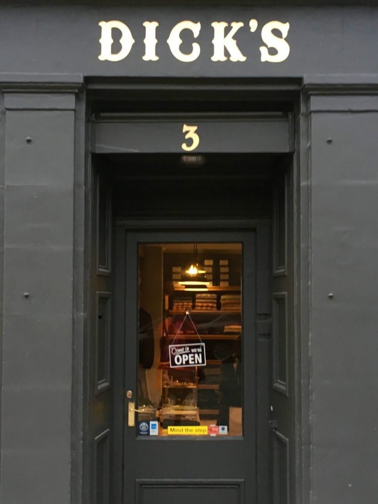 Dicks 3 North West Circus Place. Mainly exquisitely curated clothes, but also stockist of Esme Winter patterned goods and some exquisite Japanese paper blocks. Look in the cabinet for Kaweco pens.