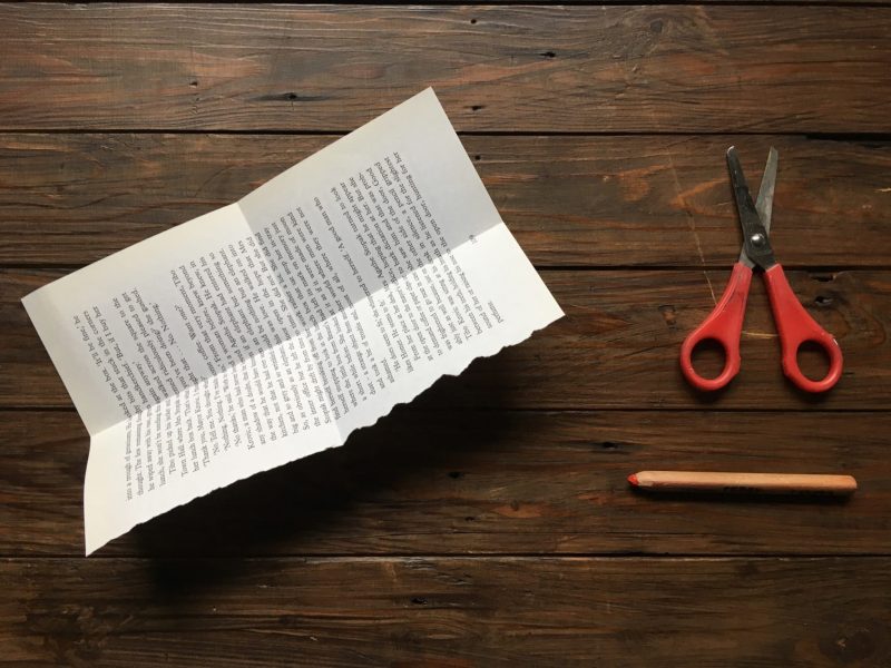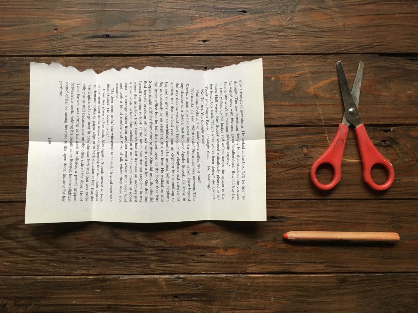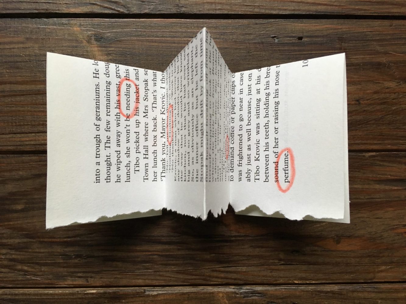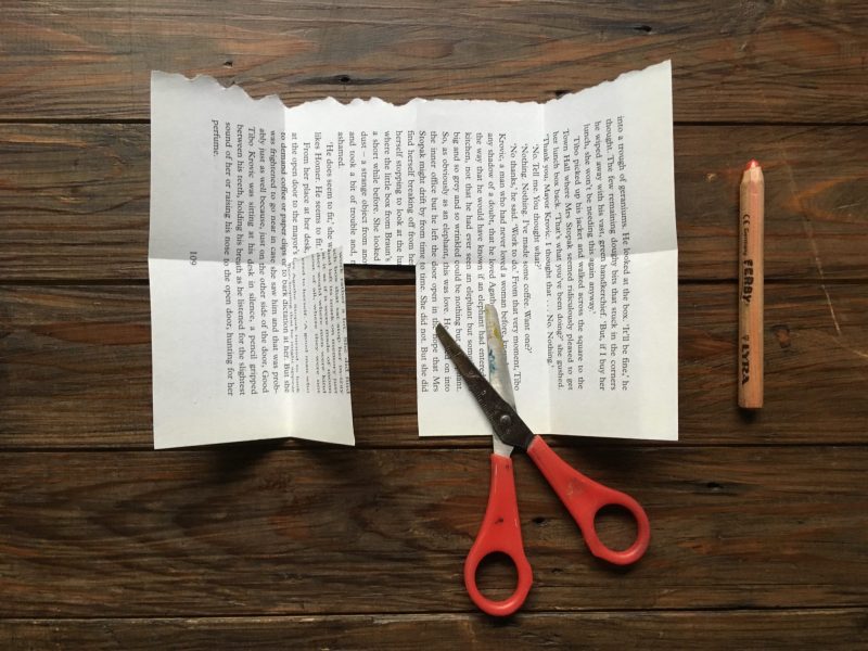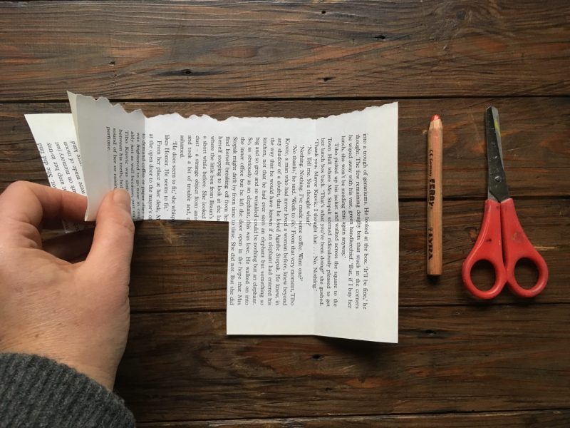 Page torn from an old novel (found in a charity shop or in the sale box of your local library.)