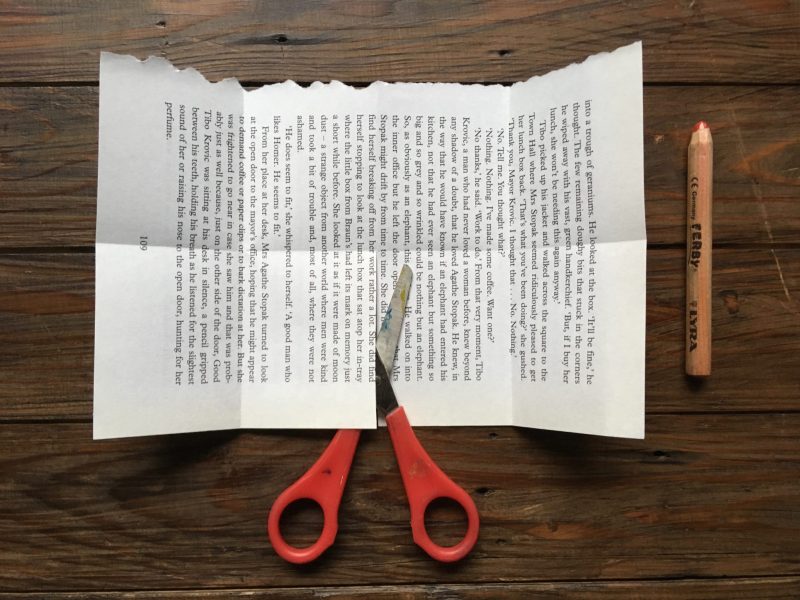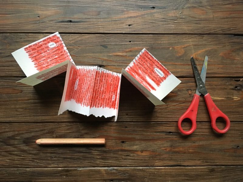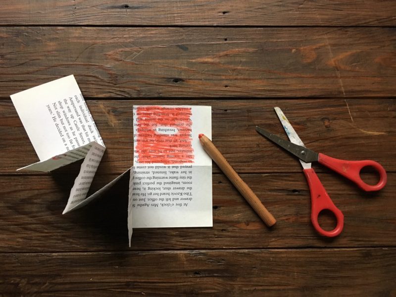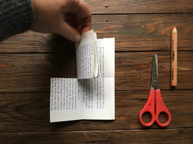 Here are instructions to make a tiny book with a found poem inside – quick, brilliant and effective.