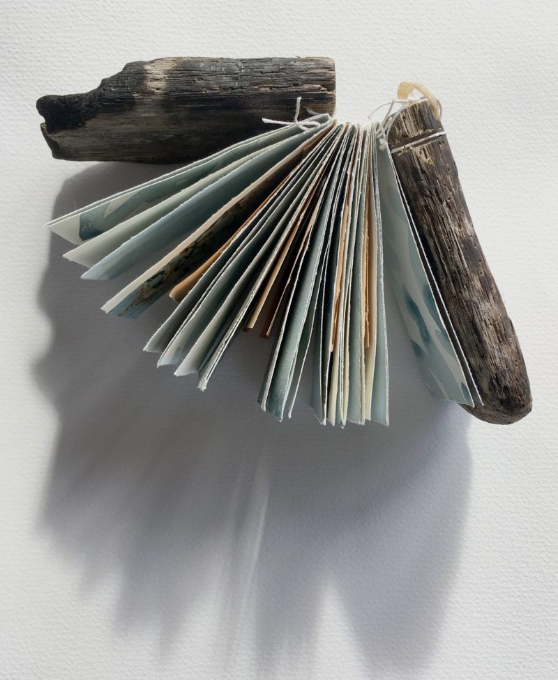 By lunchtime you’ll have bound a range of book structures. The afternoon will focus on the Coptic stitch, creating a small example to practice the binding ahead of working with driftwood covers.